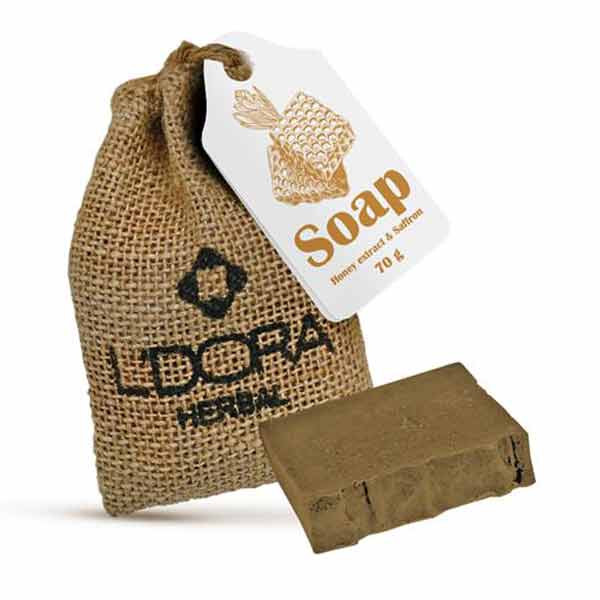 صابون گیاهی عصاره عسل و زعفران لدورا. با ترکیبات منحصر به فرد و مؤثر خود و به علت دارا بودن. عصاره عسل، روغن اسانس زعفران و روغن های خالص زیتون، نارگیل، کنجد و کرچک. علاوه بر تمیز کردن پوست باعث جوان سازی و کاهش علائم پیری پوست شده. و به روشن و شفاف شدن آن کمک می کند. همچنین عسل موجود در این صابون با داشتن خواص آنتی اکسیدانی و ضدعفونی کنندگی علاوه بر بهبود آکنه و جوش، رطوبت پوست را نیز حفظ می کند.